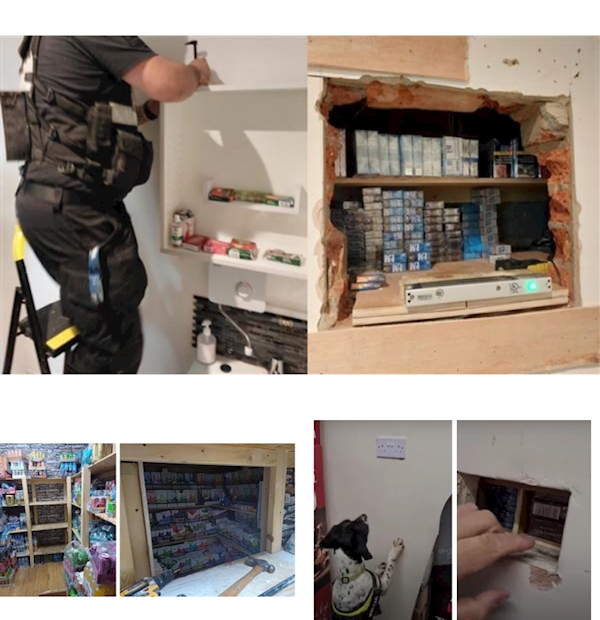 Update 3 of 5 As part of our series on Op Machinize, the National Crime Agency co-ordinated multi-agency operation focussed on tackling high street crime, today we focus on the thousands of illegal items discovered in Bourne, Grantham, Gainsborough and Lincoln. Criminals go to great lengths to conceal their illicit activities, often creating sophisticated ‘hides’ for the contraband they sell to fund far-reaching criminal activity. We’re aware they exist — it’s simply a matter of choosing the right moment to strike. On 7 October, during an enforcement at a store on North Street in Bourne, officers exposed a hide which turned out to be an entire room, lined with shelves, stocked floor to ceiling with a staggering 45,940 illicit cigarettes, 1.4kg of hand rolling tobacco and 752 vapes. On the same day (7 October) teams headed over to Grantham where they discovered a significant concealment of 15,180 cigarettes, 13.9kg of hand rolling tobacco, and 1,574 of vapes in void located behind a false wall in a shop on the High Street. The already successful day was rounded off with yet another hide being located at a store on St Peters Hill, with 1kg of hand rolling tobacco and 6,000 illegal cigarettes being discovered. On 24 October, our strategic unit targeted 16 premises during a day of Lincoln and Hykeham enforcements. A hide was located at on High Street, Lincoln, cleverly disguised as an innocuous white ‘medicine’ cabinet. At first glance, the cabinet appeared to contain only a few packets of headache tablets and similar items. On closer inspection it was found to be masking a hidden compartment. Officers discovered a hidden void dug into the wall, stocked with 4,880 illicit cigarettes and 800g of hand rolling tobacco. A haul of around 4,500 cigarettes and 3g of hand rolling tobacco were seized in a hide at a shop on Trinity Street in Gainsborough on 28 October. The illegal products were located behind a false plug socket that concealed the opening to a ‘lazy susan’ style carousel loaded with illicit cigarettes which really demonstrates the lengths criminals will go to hide their contraband and illicit activity. Sergeant Steve Parker said: "We remain resolute in our determination to disrupt these networks. Through strategic enforcement, intelligence-led operations, and the full use of legislative powers, we will continue to protect our streets from often unseen criminality — ensuring that communities across Lincolnshire, remain safe, resilient, and inhospitable to those who seek to profit from criminal enterprise in our county." Of the overall operation, Inspector Paul Sands said: "The effort criminals invest in hiding illegal goods shows just how vital it is to their operations. These sales don’t just break the law—they bankroll serious crimes like trafficking, drugs, and laundering, which harm society in countless ways. "Each inspection gives us a chance to uncover intelligence and take unsafe, counterfeit products out of circulation. "Working together—with partners and the public—is key. Every disruption weakens these networks and reinforces our commitment: organised crime will not thrive in Lincolnshire." Three of the exciting discoveries captured on video can be seen here: